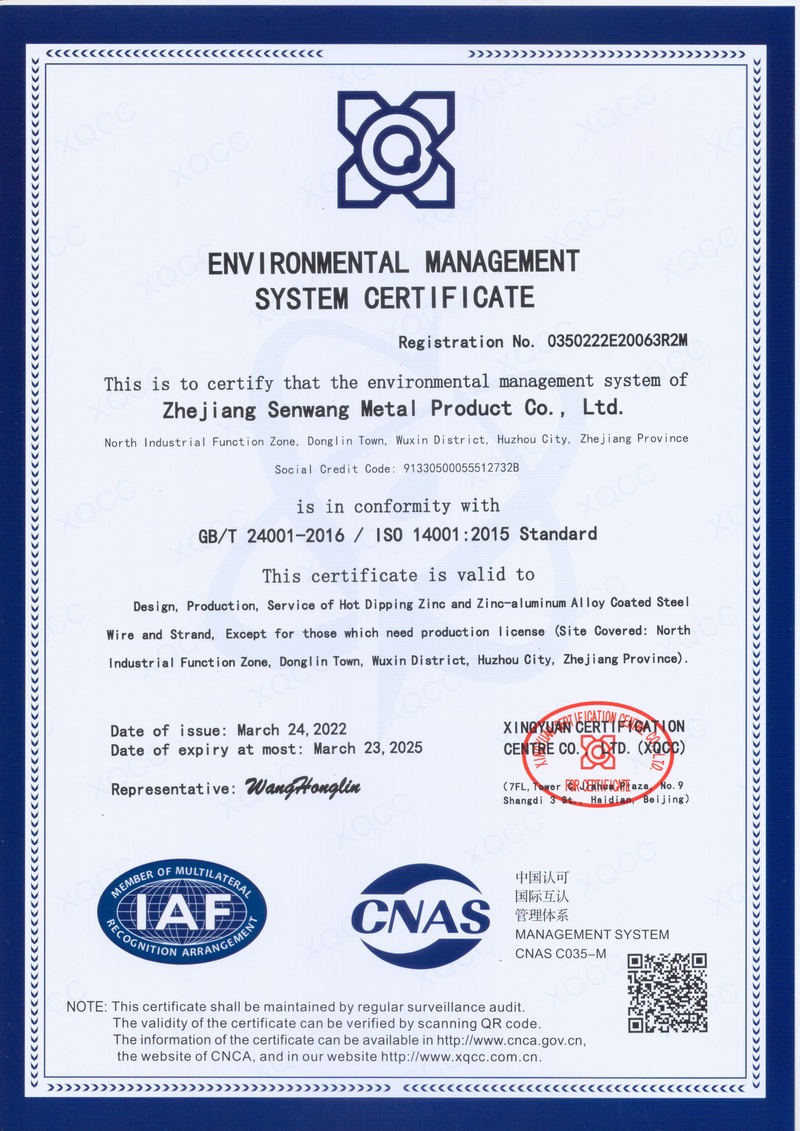 浙江森旺金屬制品有限公司成立于2012年,坐落湖州市吳興區(qū)東林鎮(zhèn)工業(yè)功能區(qū)。公司專業(yè)從事各類鍍鋅鋼絲、鋼絞線等產(chǎn)品的開發(fā)及生產(chǎn)。目前產(chǎn)品已廣泛應(yīng)用于各類通信光電纜,電力輸送,電氣化鐵路工程,各類堤壩防護(hù)及農(nóng)業(yè)溫室等工程領(lǐng)域。公司秉承“追求卓越品質(zhì),創(chuàng)建卓著信譽”的經(jīng)營理念,始終堅持專業(yè)化、規(guī)模化的經(jīng)營模式。